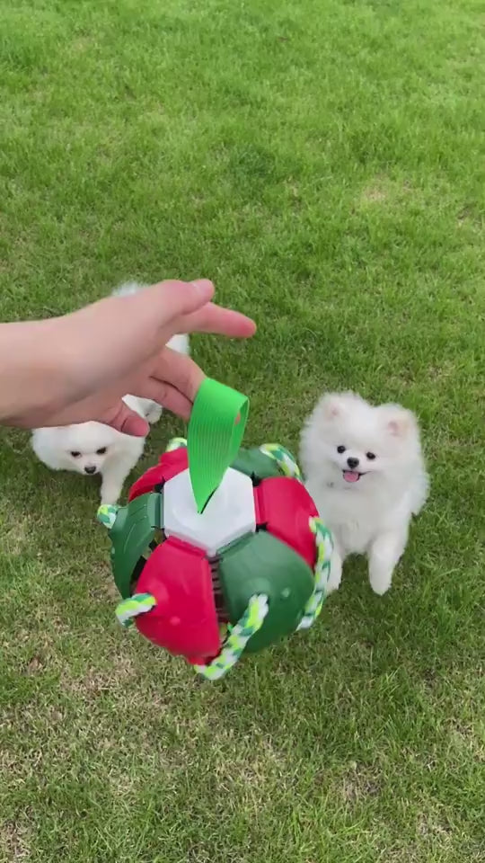 This is a multifunctional fun toy that combines a bounce back frisbee ball, interactive training ball, teething ball, tug of war toy and outdoor sports entertainment for multiple playtime fun for your dog.